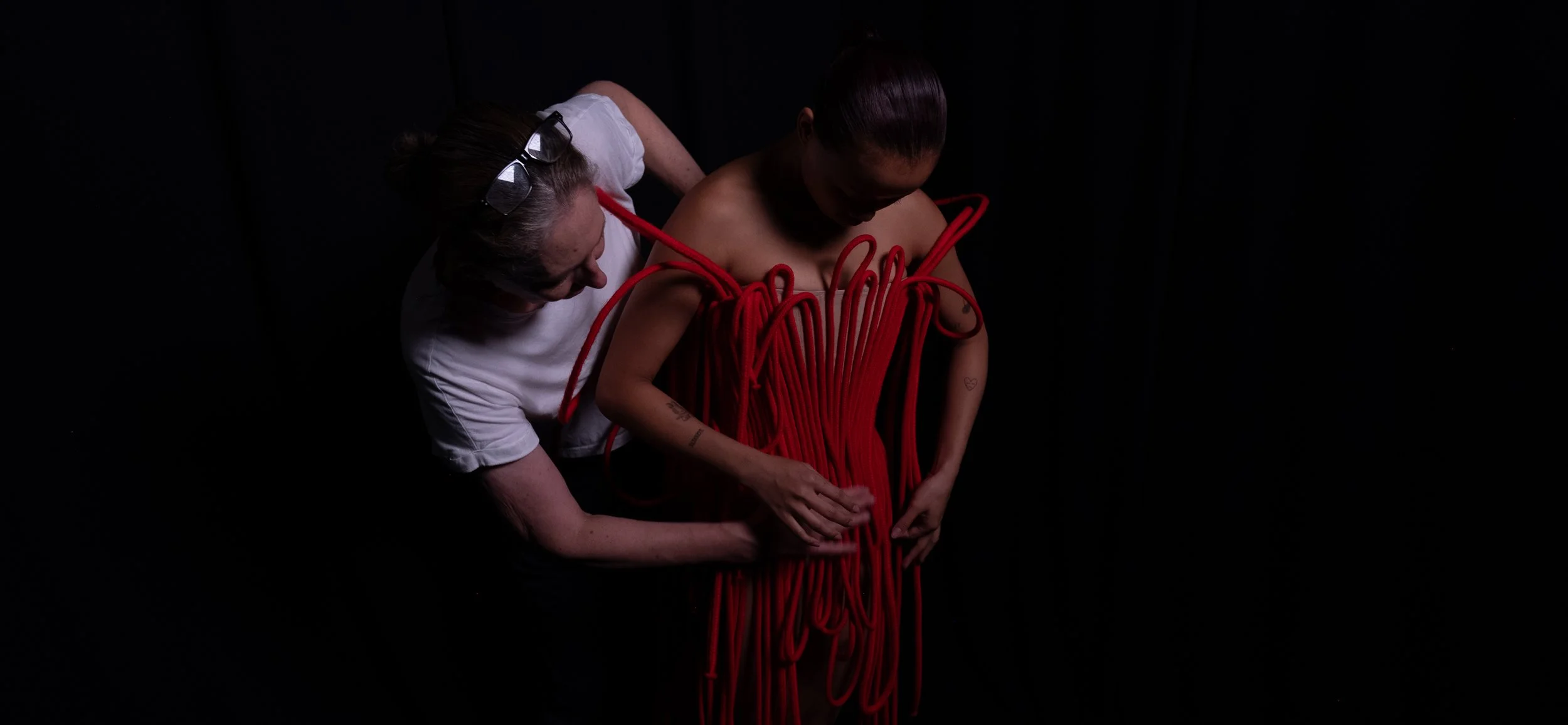 For Needle Dance, Milner's shibari-inspired costumes weave fragility and strength into Harris's underwater choreography.
